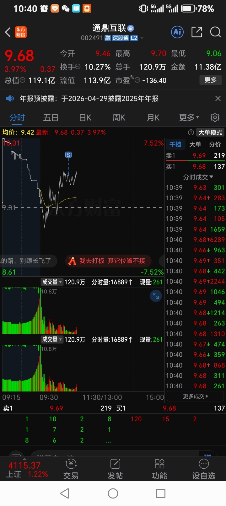 $通鼎互联(SZ002491)$ 沙鼻主力我卖了你涨停啊