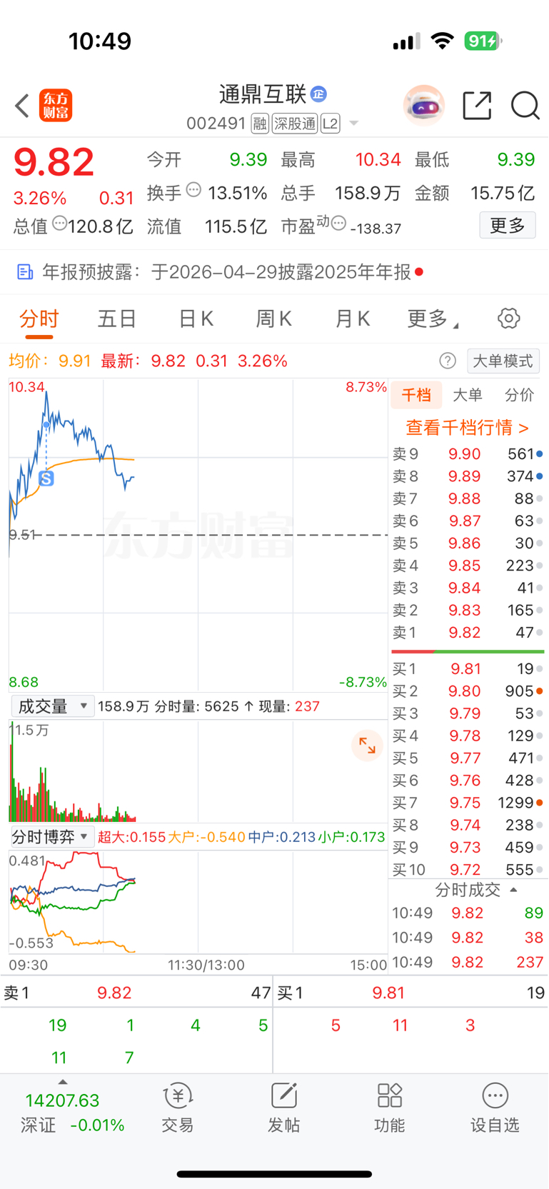 $通鼎互联(SZ002491)$ 隐隐约约感觉量能不大好,就先出来了