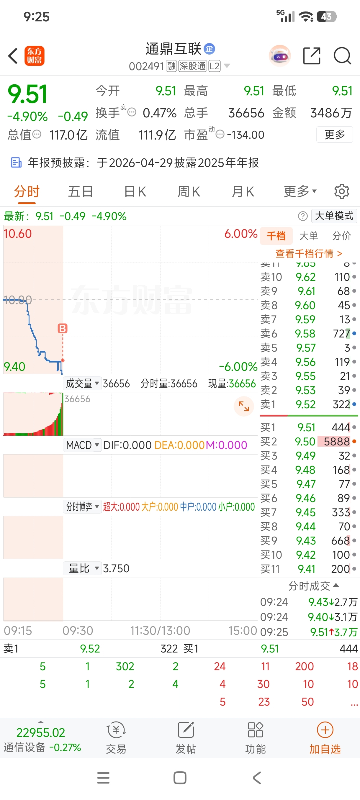 $通鼎互联(SZ002491)$ 直接上了,等会再加