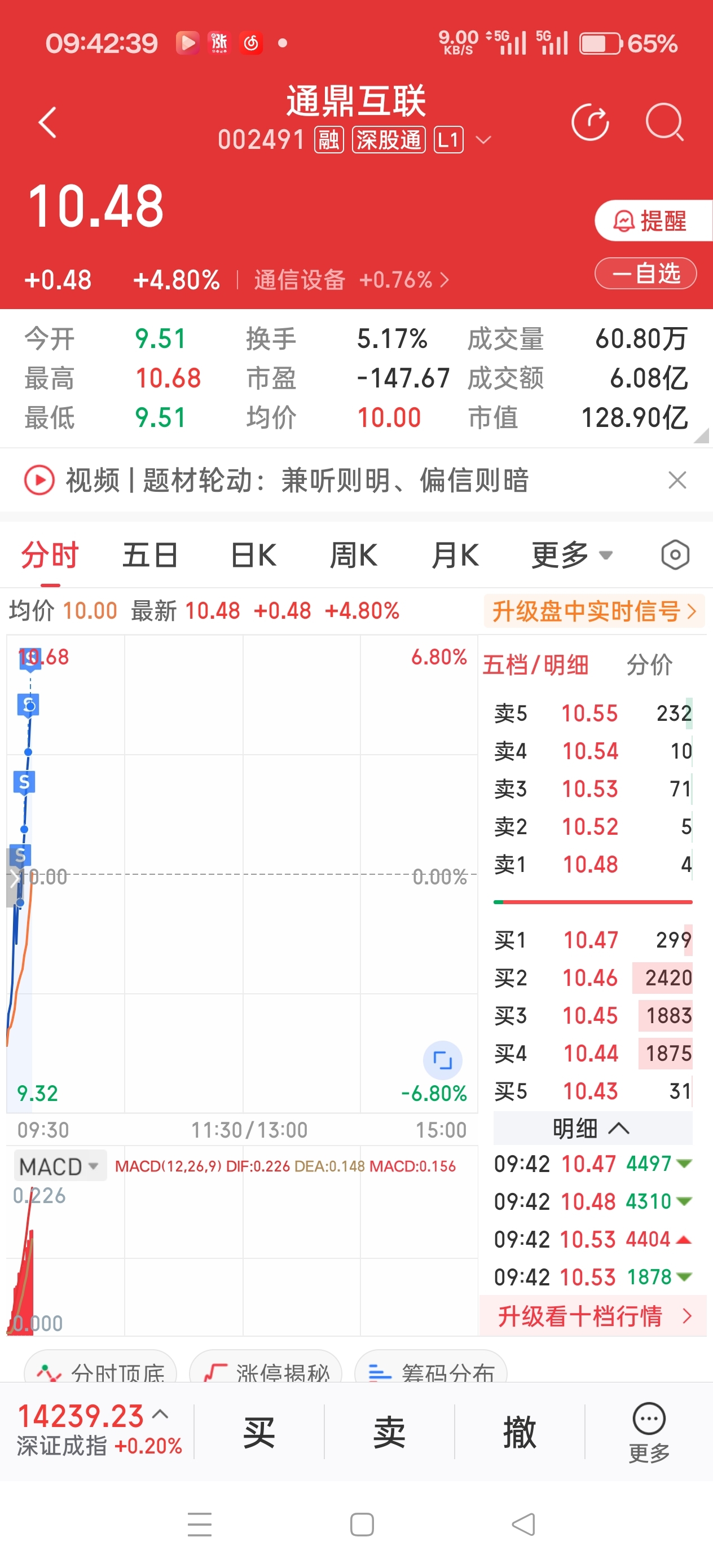 $通鼎互联(SZ002491)$ 没那个命,哎。6个点吃不上