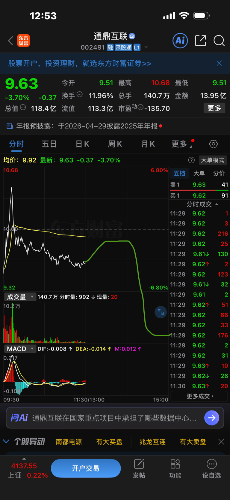 $通鼎互联(SZ002491)$