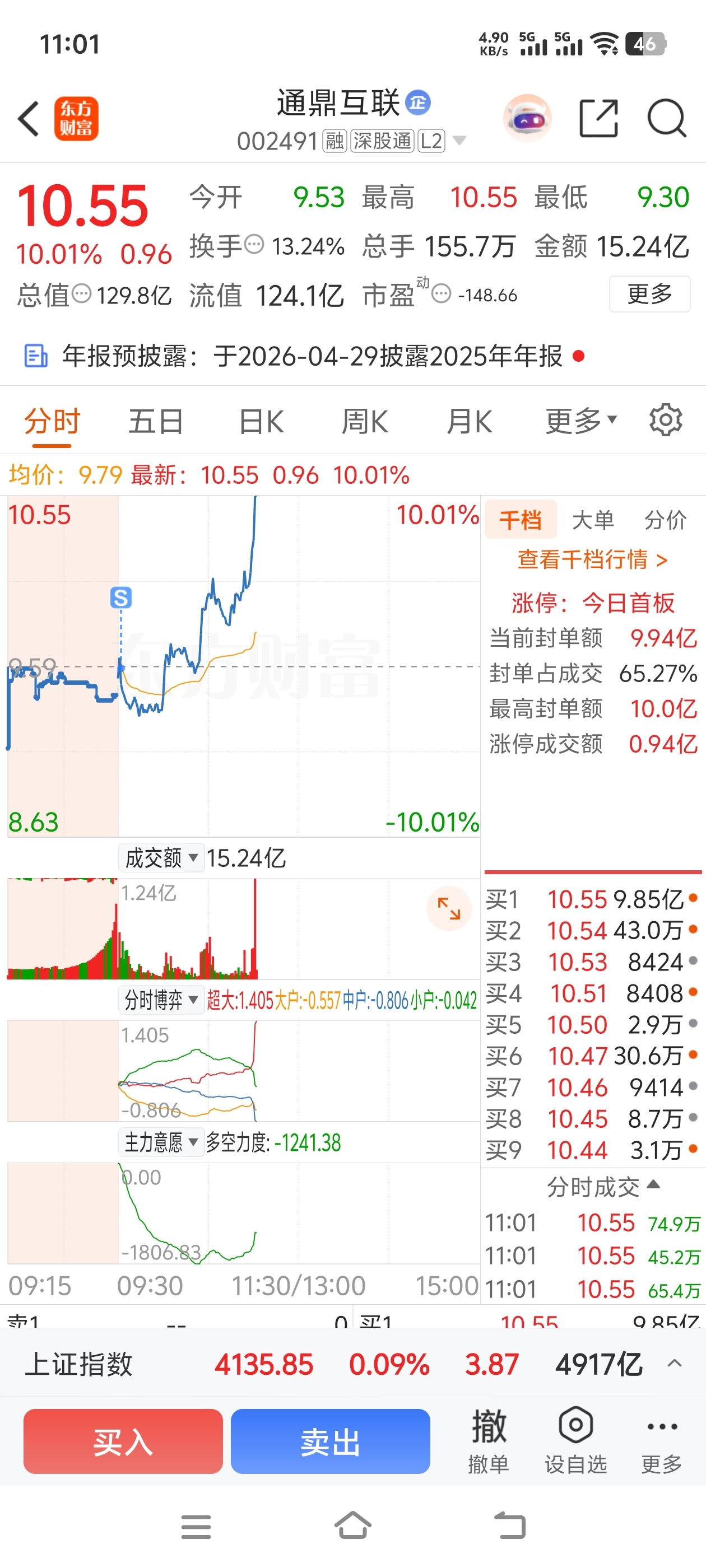 $通鼎互联(SZ002491)$ 昨天追高买的