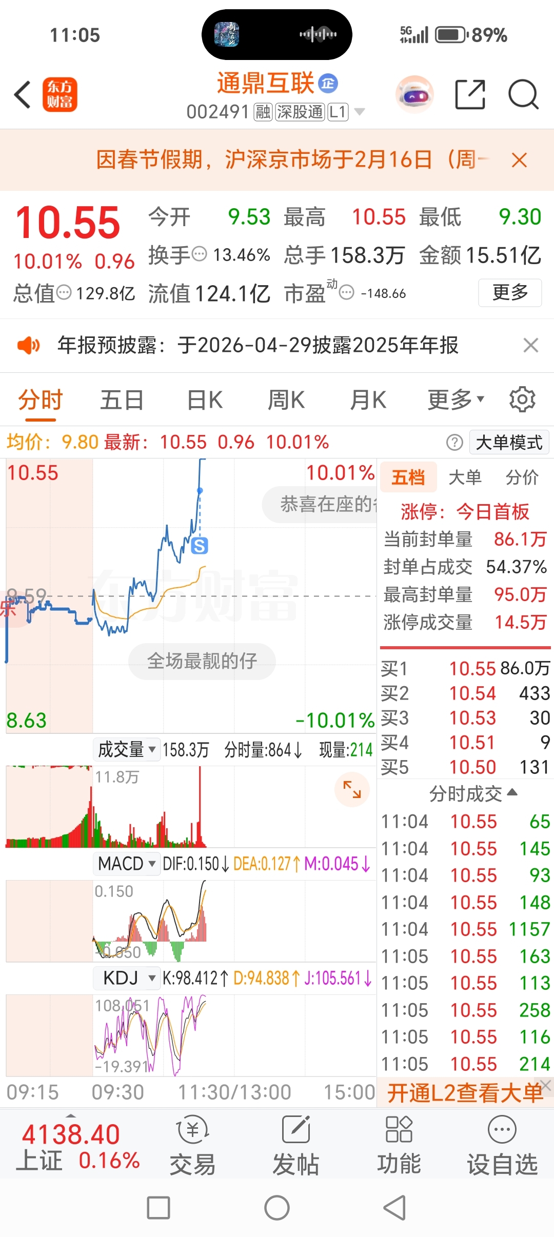 $通鼎互联(SZ002491)$ 卖飞了,卖飞了,今天庄家一反常态呀,封死了,前几天都是来回做t赚个盆满钵满的,不过也可以了,今天赚八个点了,昨天水下进的,一正一反十几个进,战绩还是可圈可点的!祝留下的发财!