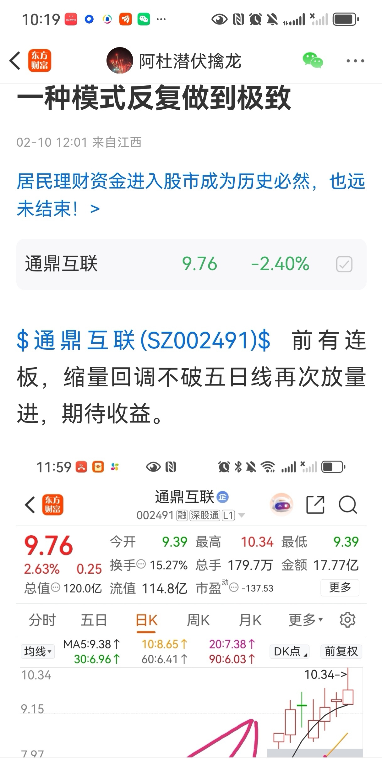 $通鼎互联(SZ002491)$ 周一进通鼎互联,今天喜提涨停板