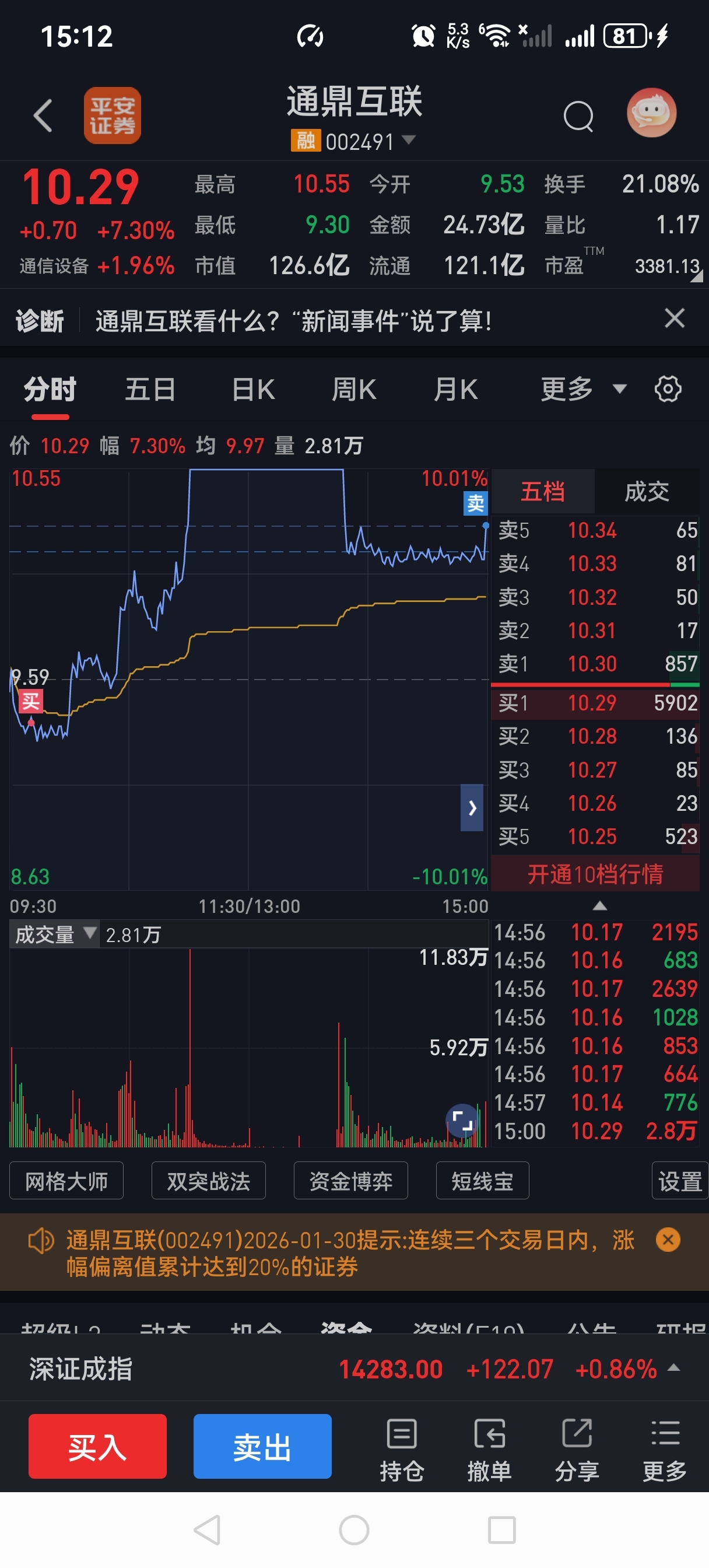 $通鼎互联(SZ002491)$ 每天做T,成本7.5了