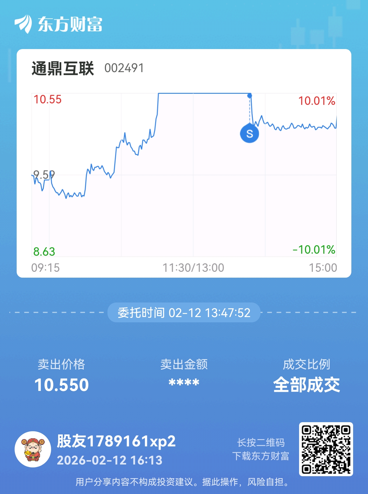 温馨提示: 1.根据《证券法》规定,禁止编造、传播虚假信息或者误导性信息,扰乱证券市场;2.用户在本社区发表的所有资料、言论等仅代表个人观点,与本网站立场无关,不对您构成任何投资建议。用户应基于自己的独立判断,自行决定证券投资并承担相应风险。《东方财富社区管理规定》