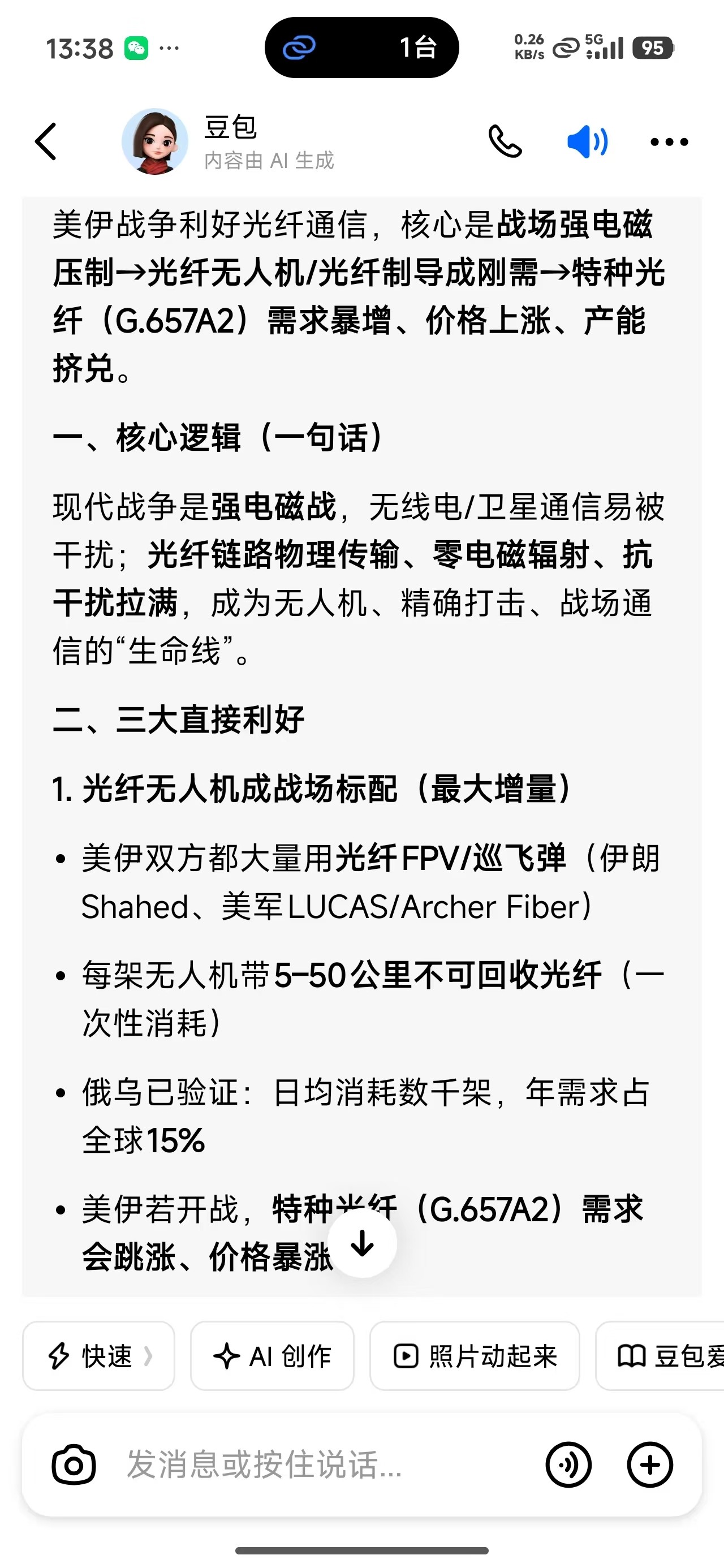 $通鼎互联(SZ002491)$ 周五卖出的明天加价追高买吧!战争是利好光纤通信的,而且明天还有世界移动通信大会,美股应用光电已暴涨56%