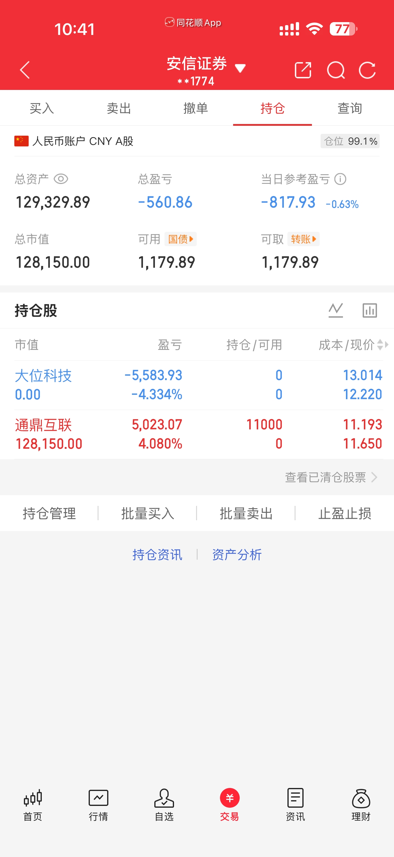 $通鼎互联(SZ002491)$ 实盘记录day4:大位不看了,布局通鼎,没有板住