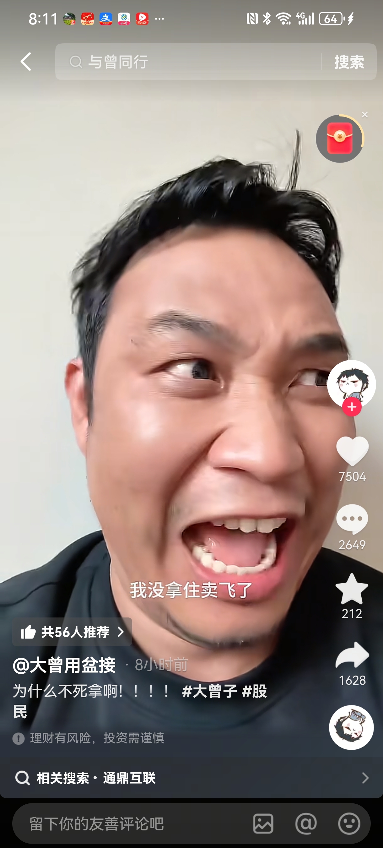 $通鼎互联(SZ002491)$ 大曾子气的哇哇叫,这周一直连板,他每天都会哭一次