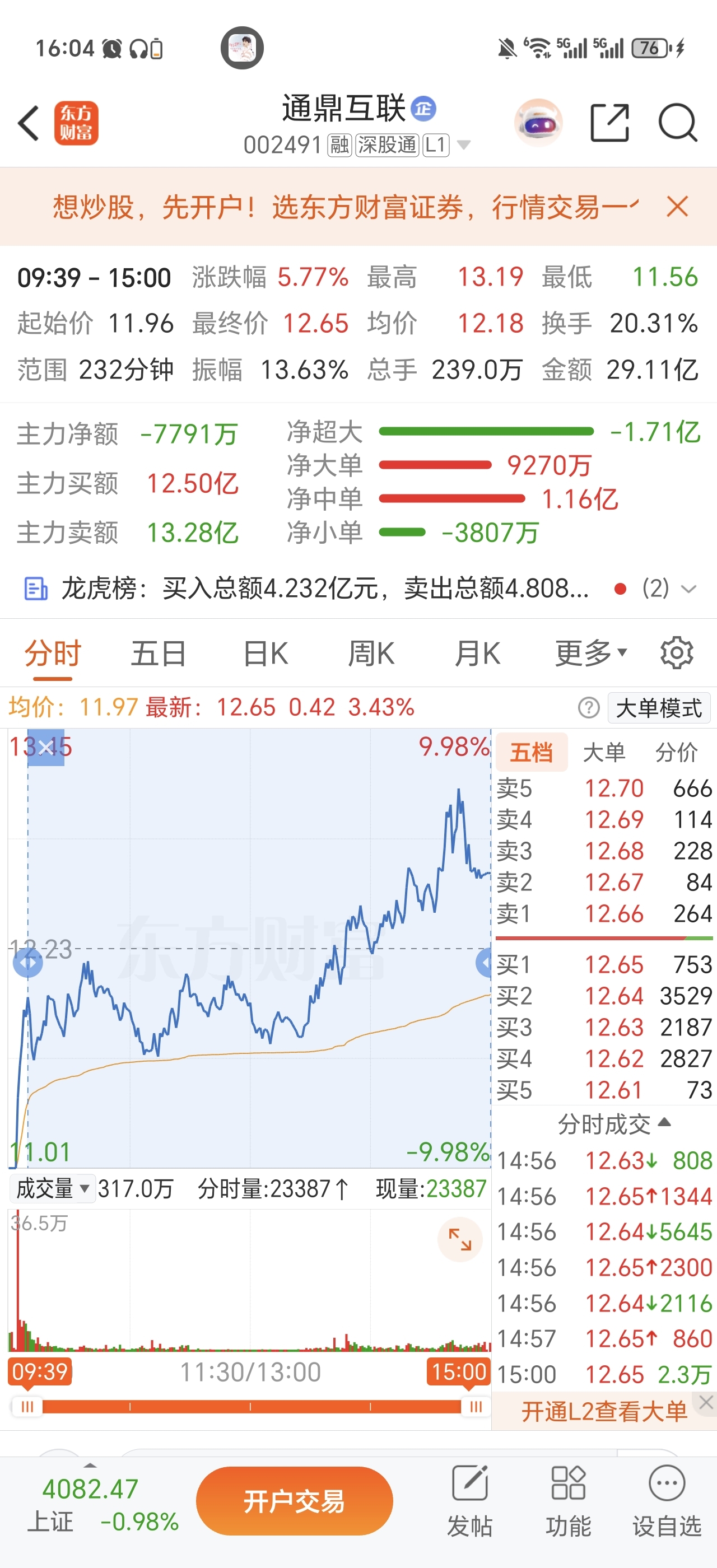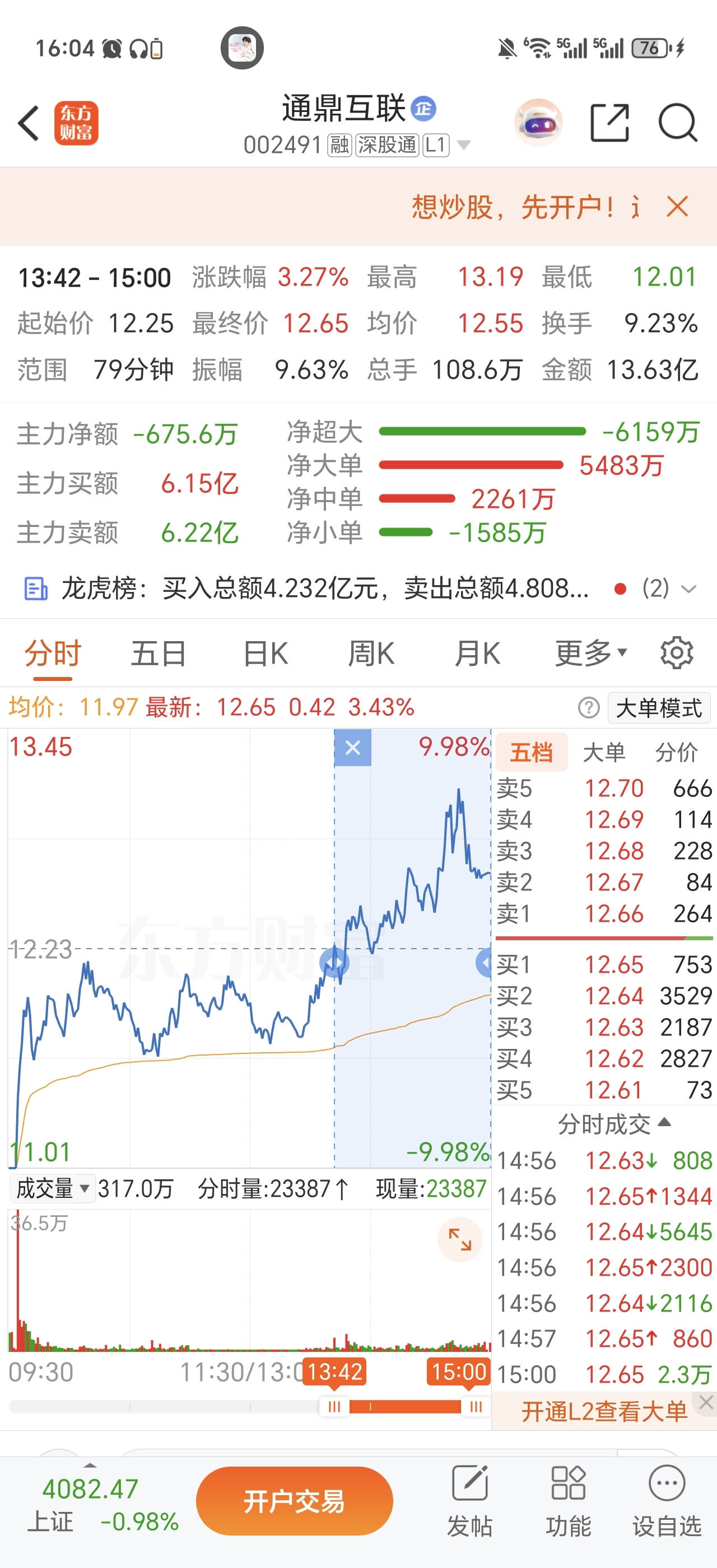 $通鼎互联(SZ002491)$ 笑死,空狗说明天一字跌停,你看看今天11.6~12.6成交了多少的量,今天均价都快打到12了,基本上是-3以上位置承接了大部分的量。翘板拉到最高点开始算,到收盘成交了200多万手,下午红盘开始算到收盘成交了100多万手