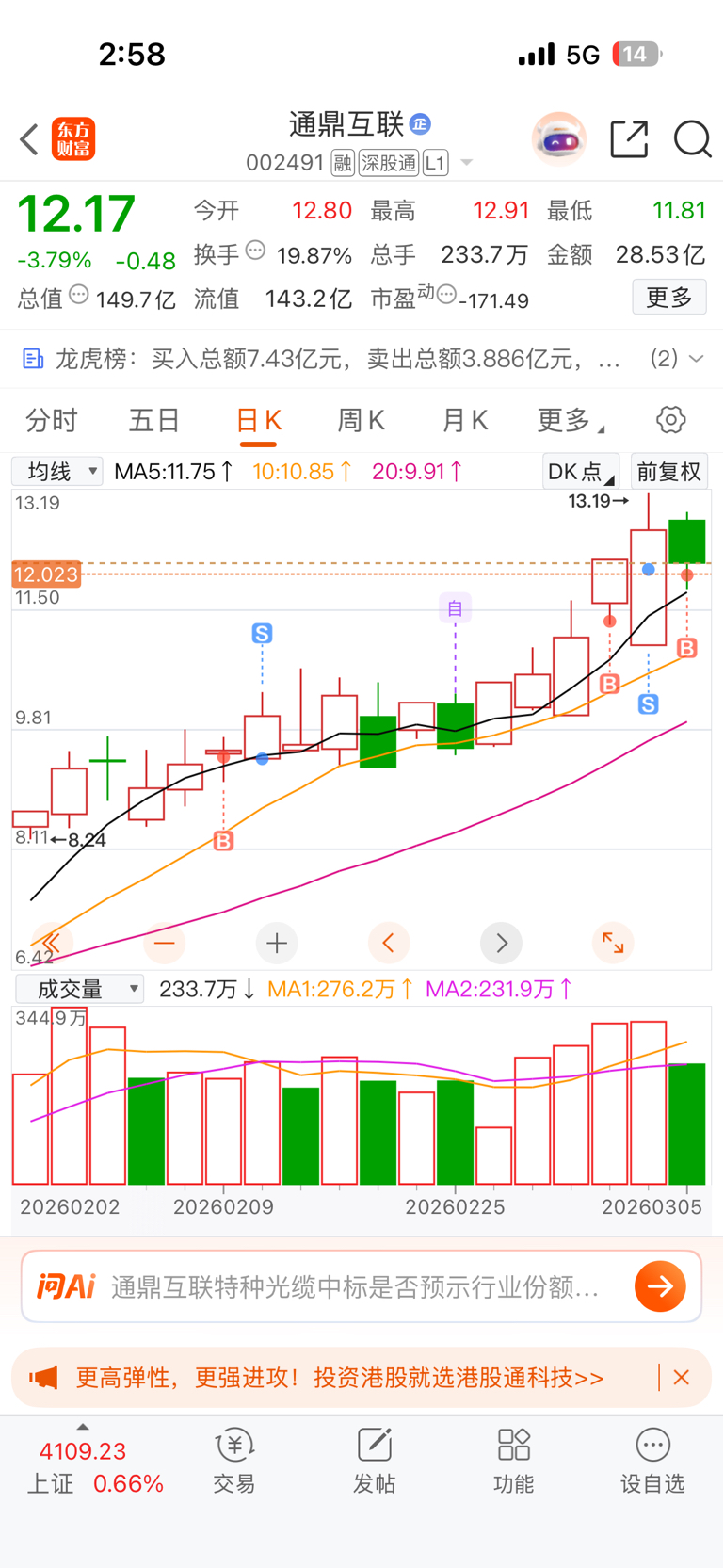 $通鼎互联(SZ002491)$ 按照以往的节奏来看,明天是要涨停的,所以尾盘几分钟有资金来抢,当然包括我,明天冲高卖掉又是隔日套利