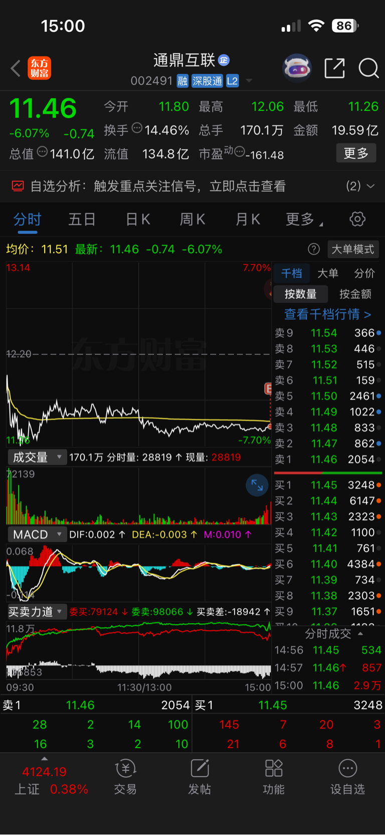$通鼎互联(SZ002491)$ 量化横行,周一自救