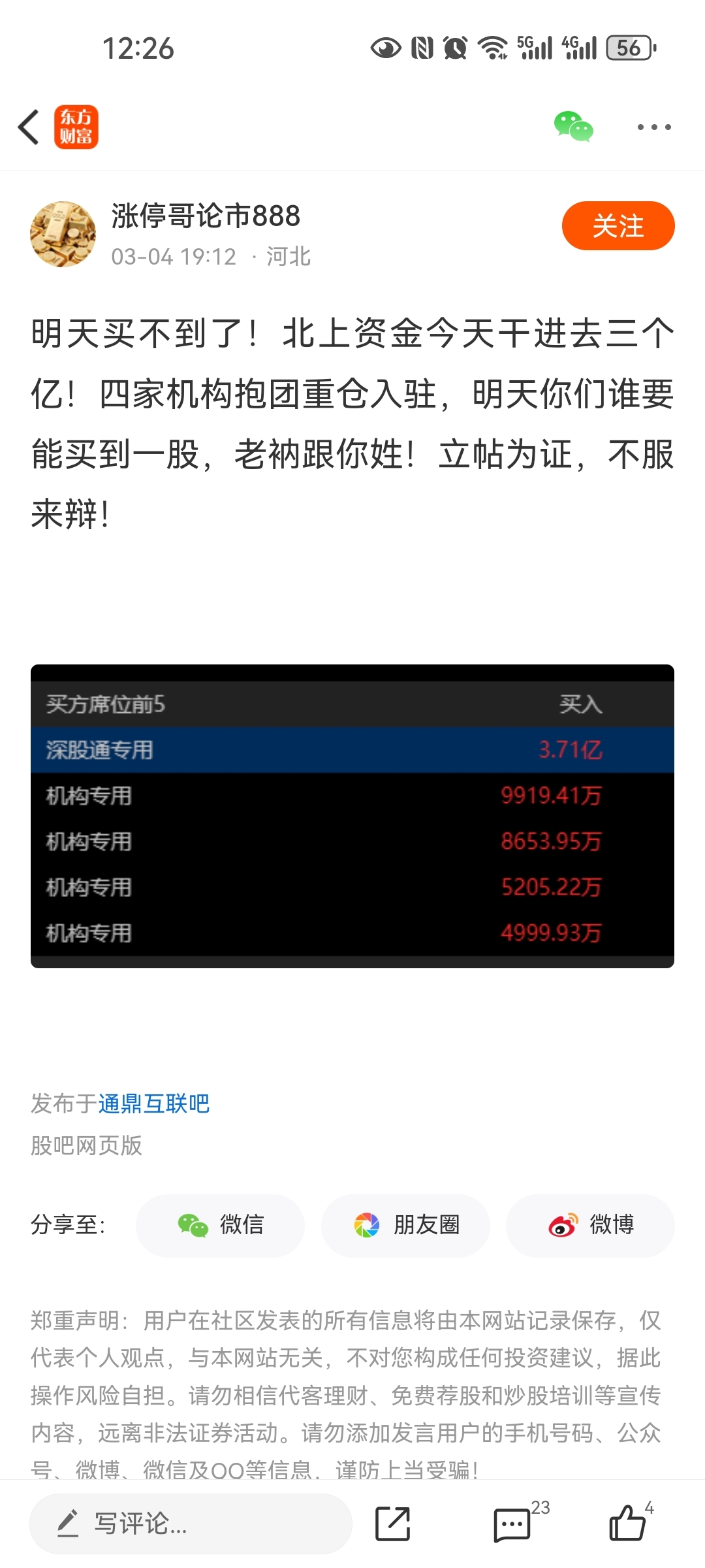 温馨提示: 1.根据《证券法》规定,禁止编造、传播虚假信息或者误导性信息,扰乱证券市场;2.用户在本社区发表的所有资料、言论等仅代表个人观点,与本网站立场无关,不对您构成任何投资建议。用户应基于自己的独立判断,自行决定证券投资并承担相应风险。《东方财富社区管理规定》