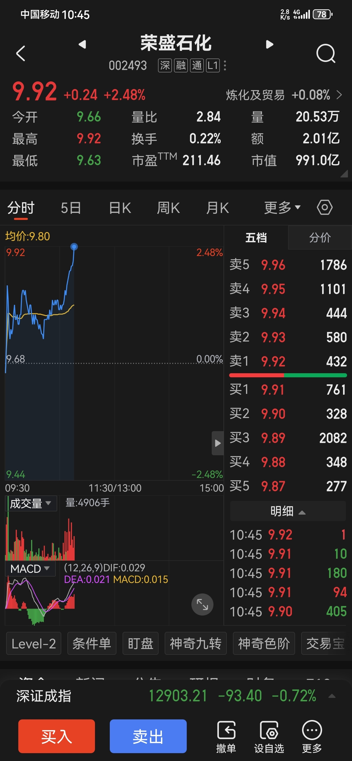 10:45,上涨2.48%,今天14:57前能不能涨停板?分析一下:1)双龙齐飞