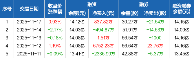 荣盛石化:融资净买入837.82万元,融资余额14.12亿元(11-17)
