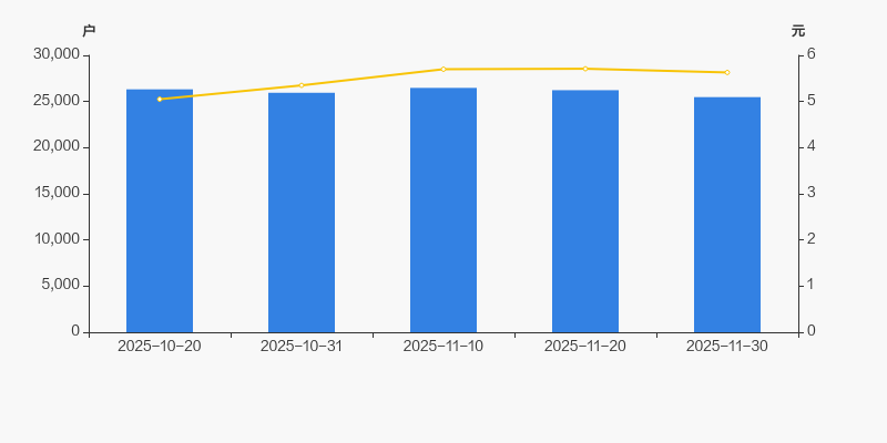 2025年10月20日至今,公司股东户数有所下降,区间跌幅为3.20%。2025年10月20日至2025年11月30日区间股价上涨11.49%。
