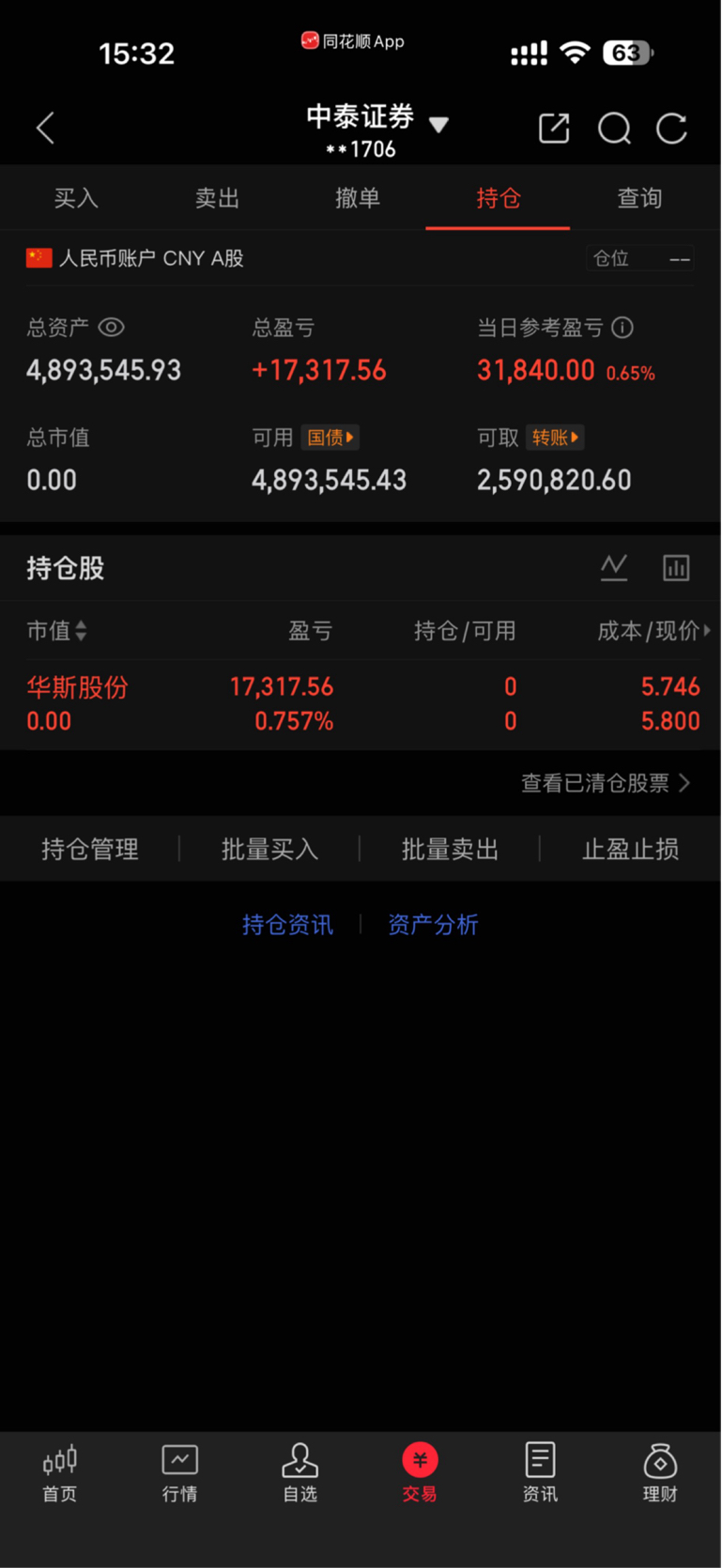 兄弟们,关了几年了,398000股今天5.79全出了,5.74的本,祝留下的发财