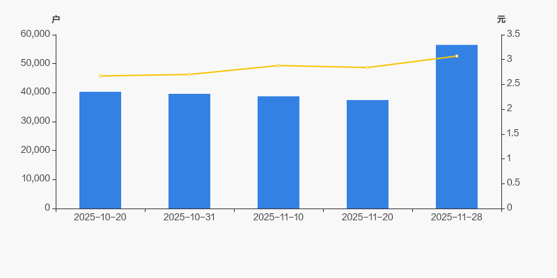 2025年10月20日至今,公司股东户数显著增长,区间涨幅为40.17%。2025年10月20日至2025年11月28日区间股价上涨14.98%。