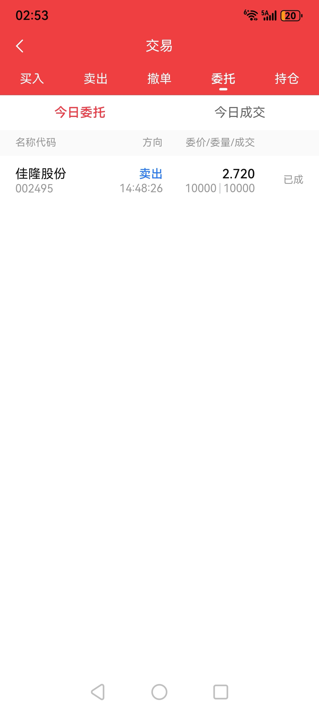 $佳隆股份(SZ002495)$ 2.72,卖10000。已成交。。。