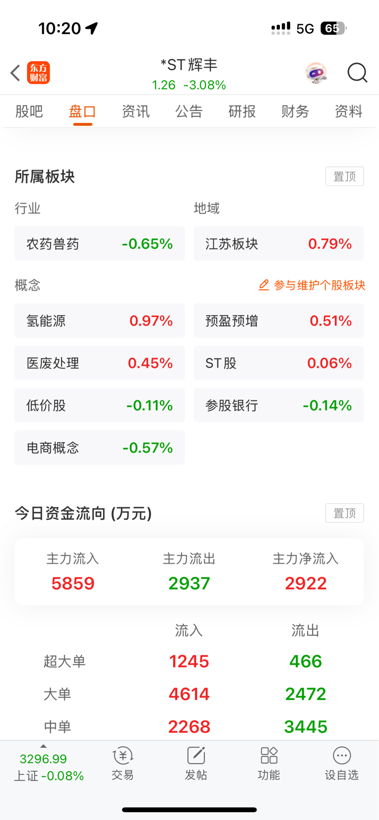 $*ST辉丰(SZ002496)$ 主力进了三千万 难道是假的?