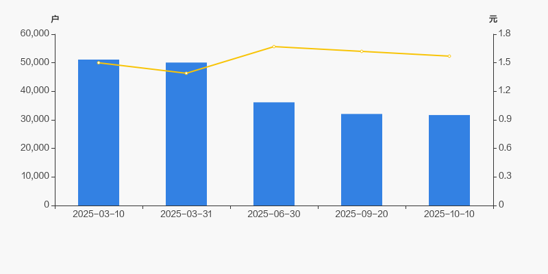 2025年3月10日至今,公司股东户数显著下降,区间跌幅为38.00%。2025年3月10日至2025年10月10日区间股价上涨4.67%。
