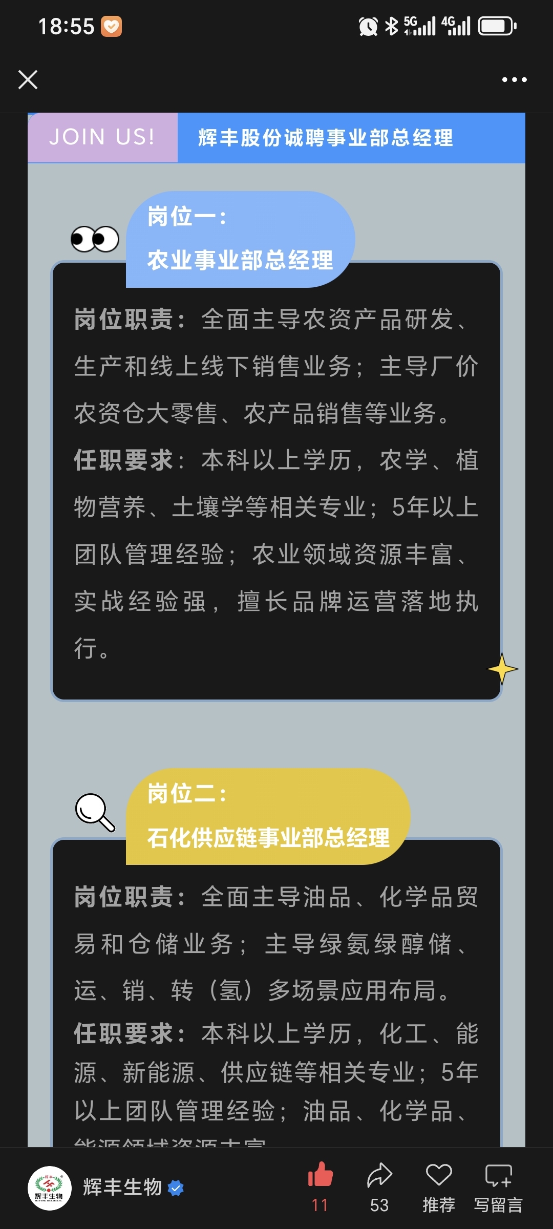 $*ST辉丰(SZ002496)$ 两个最重要的事业部总经理重新招聘,侧面反映前三季度经营未达标!
