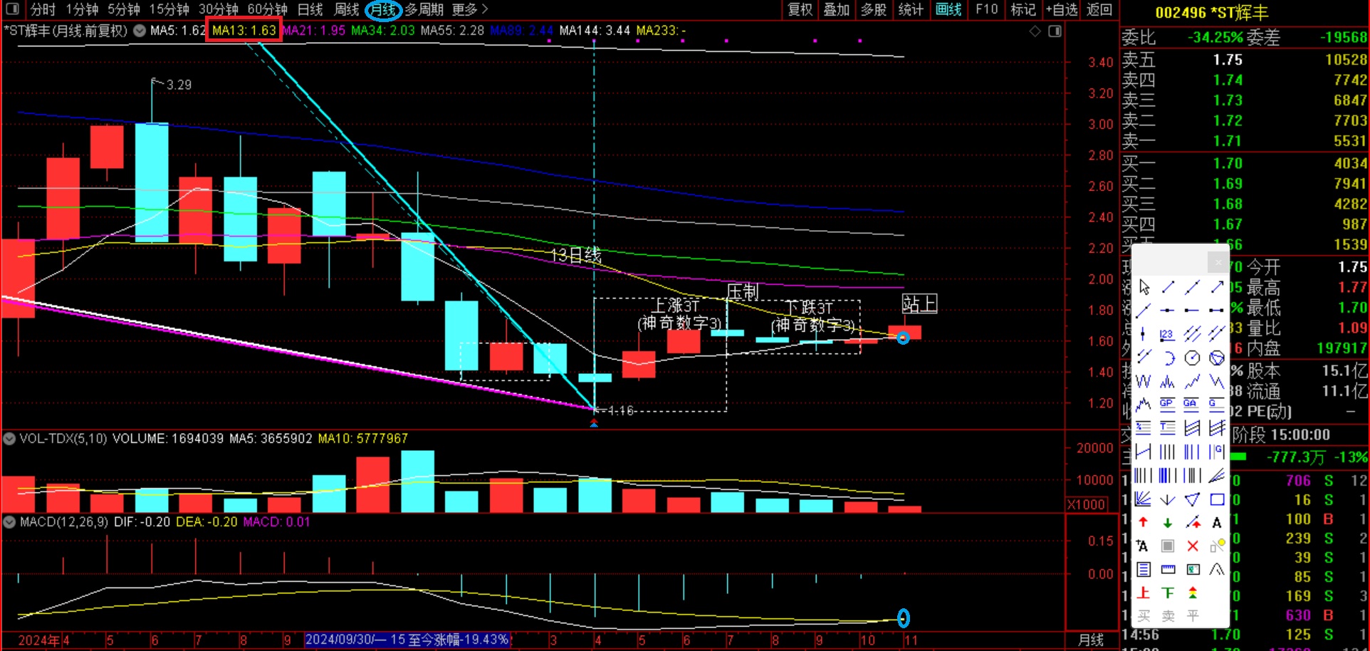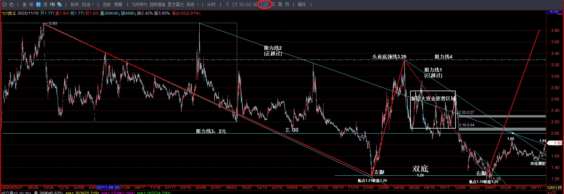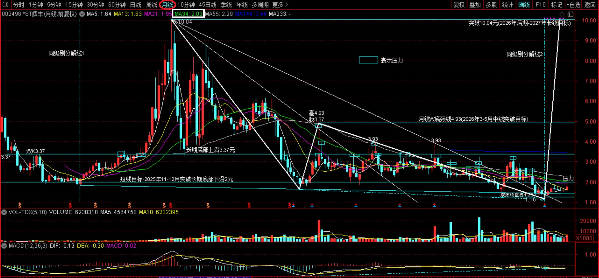 短线目标-突破2元(还看辉丰)——中线目标-突破4.93元(还看辉丰)——长线目标-突破10.04(还看辉丰)