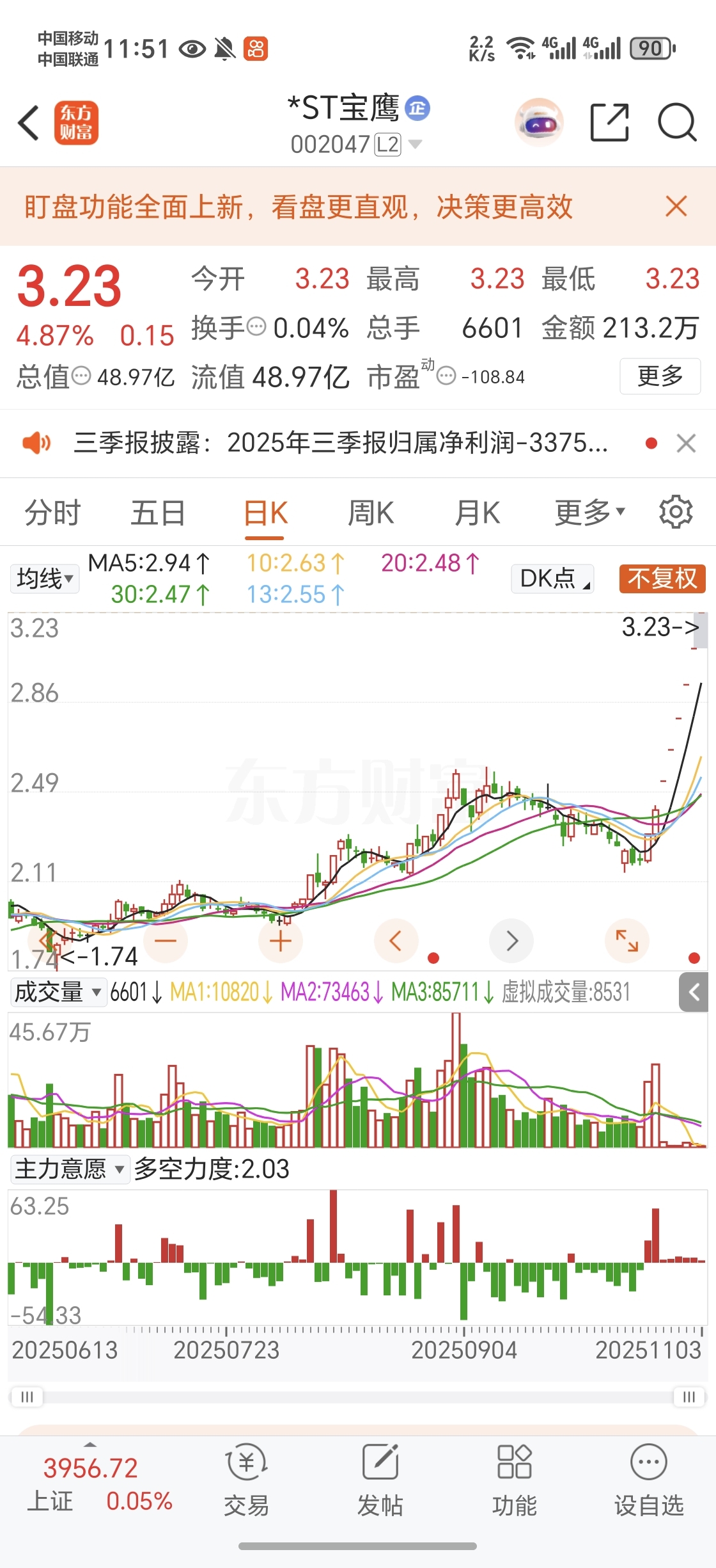 $*ST辉丰(SZ002496)$ 怪散户太多,怪人心不齐,如果像宝鹰一样人心齐,没有抛压,500W就能封涨停板,散户太多就是一群乌合之众,散户不懂做T赚钱少,翻倍赚的多