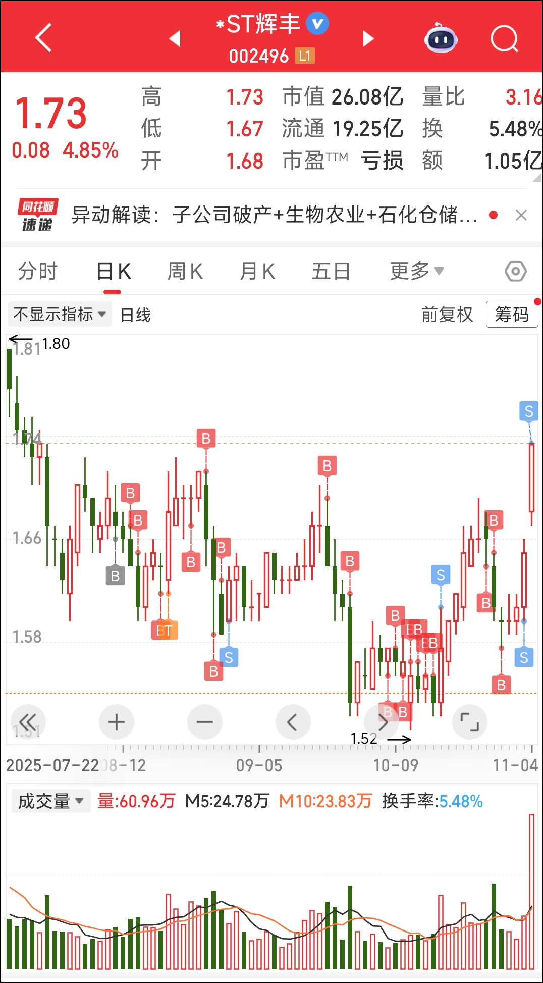$*ST辉丰(SZ002496)$ 姐姐来了,姐姐不再寂寞,嘻嘻