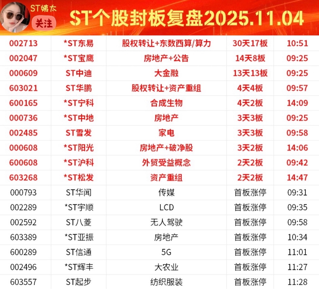 ST个股封板追踪:6