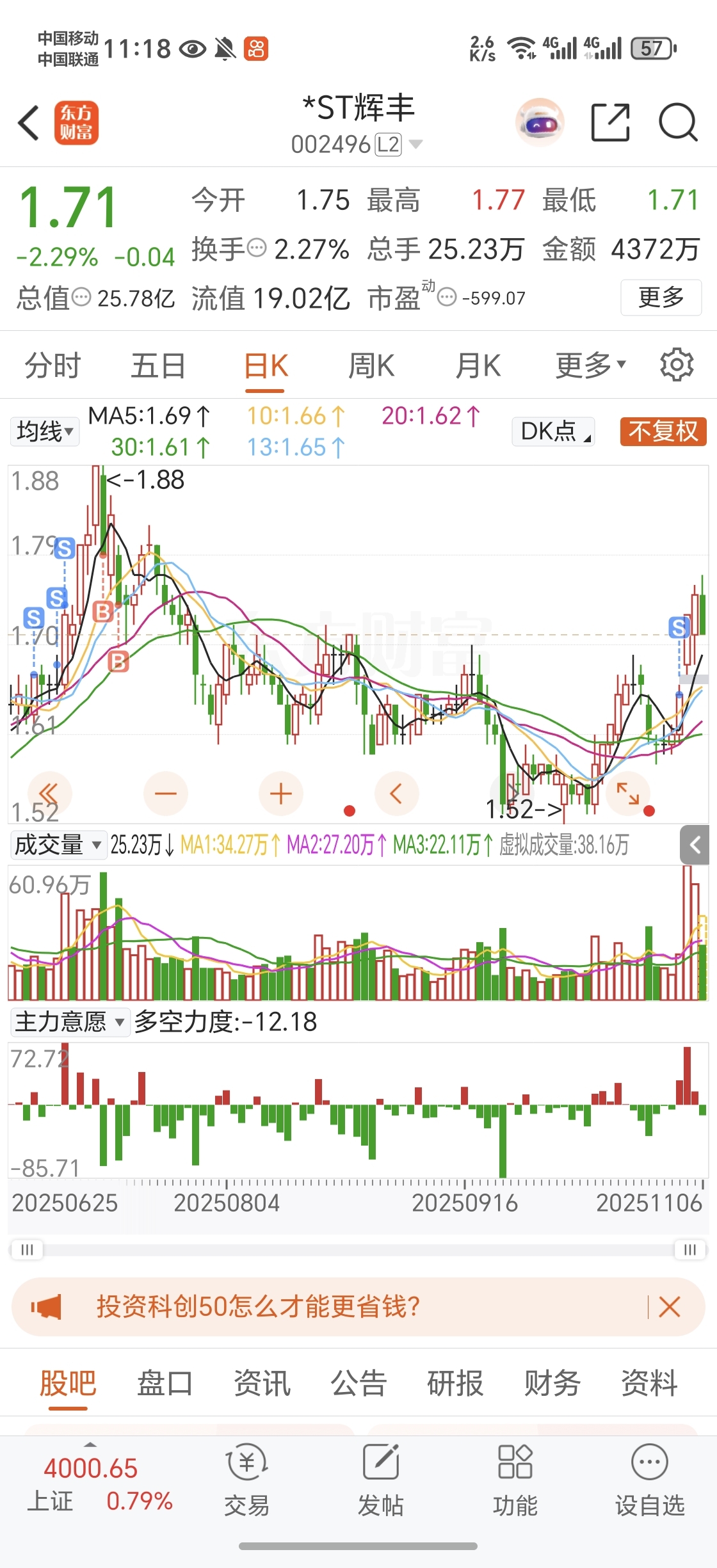 $*ST辉丰(SZ002496)$ 1.57就买回来