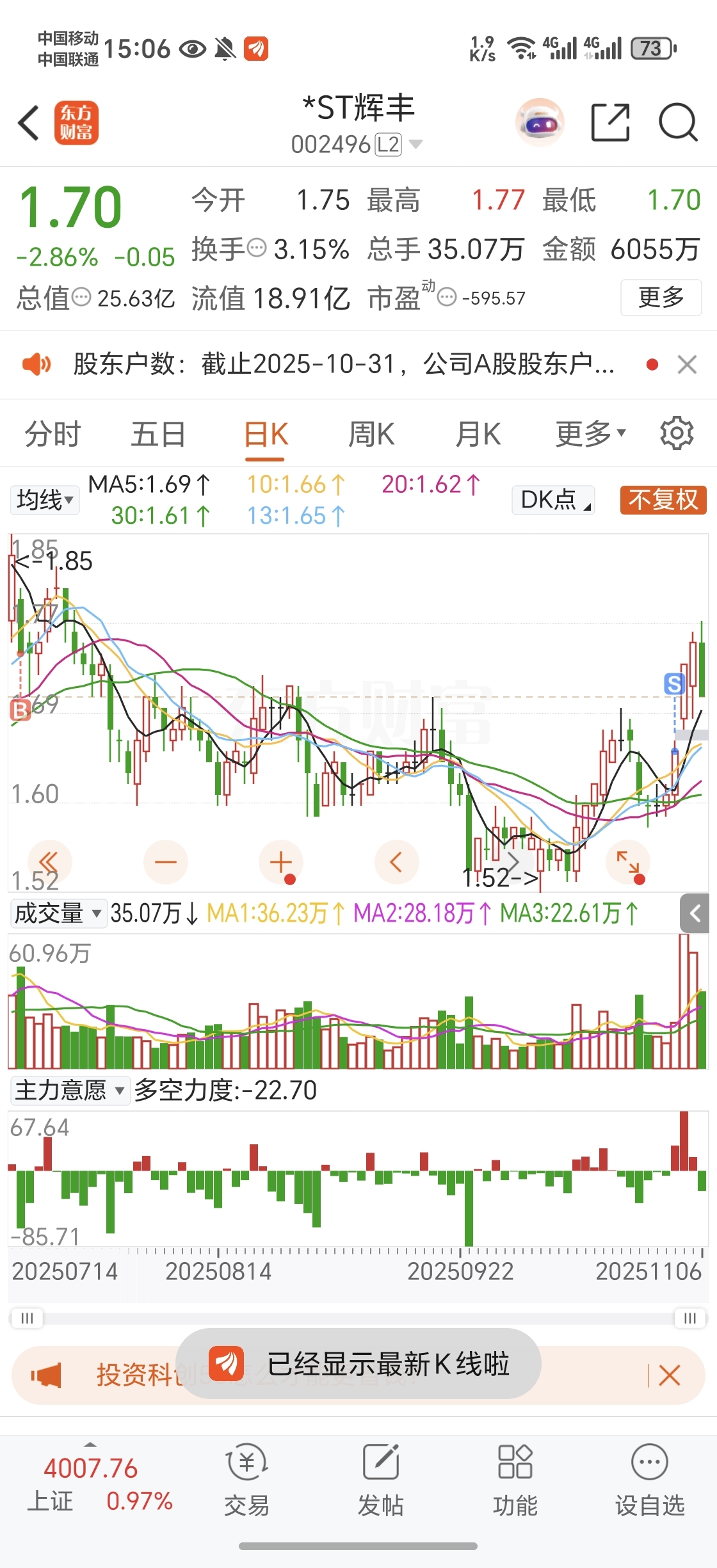 $*ST辉丰(SZ002496)$ 1.65卖的,1.57我才会买回来