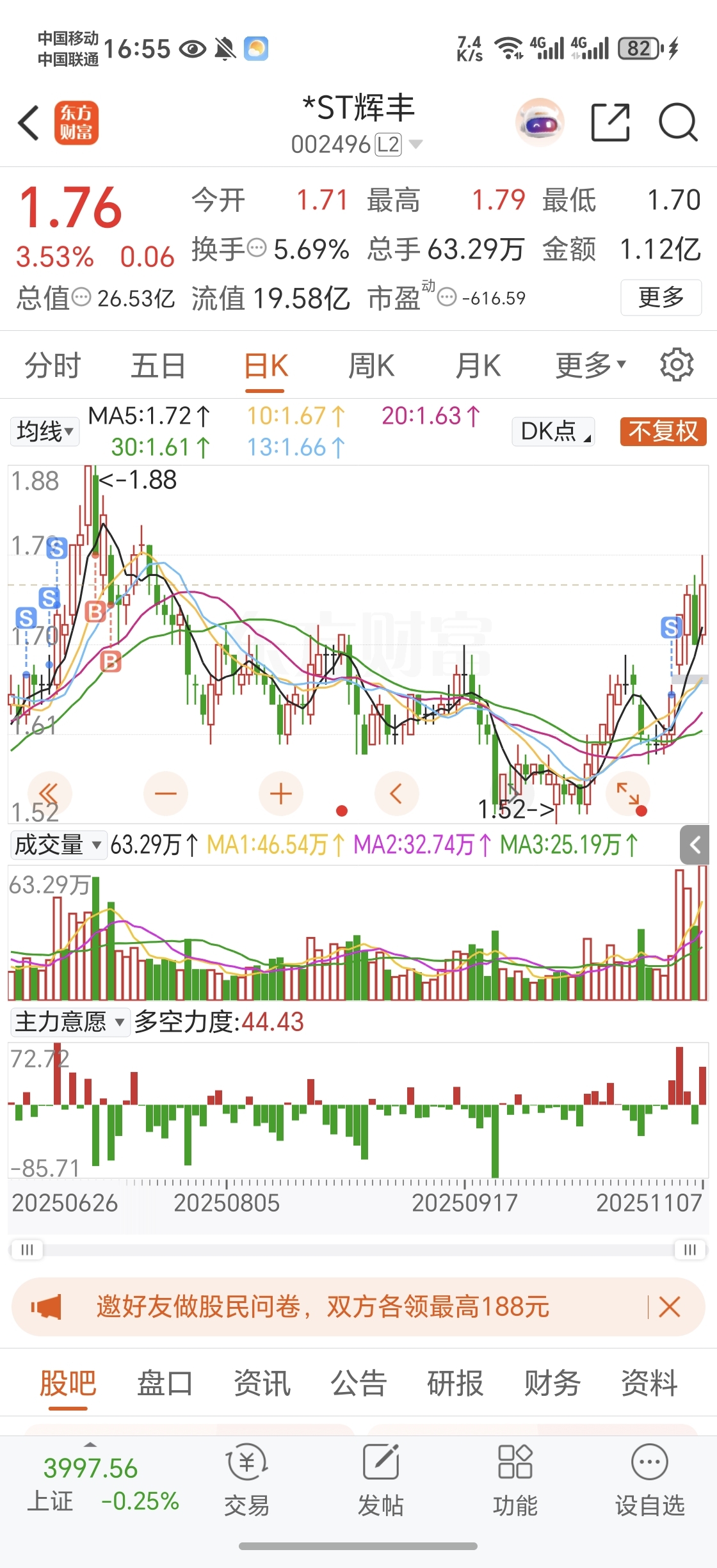 $*ST辉丰(SZ002496)$ 尾盘砸是诱空,明天大家抢跑