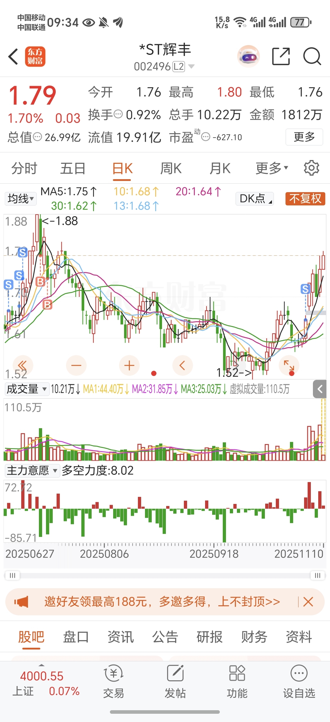 $*ST辉丰(SZ002496)$ 跌下来啊,1.57想就买回来