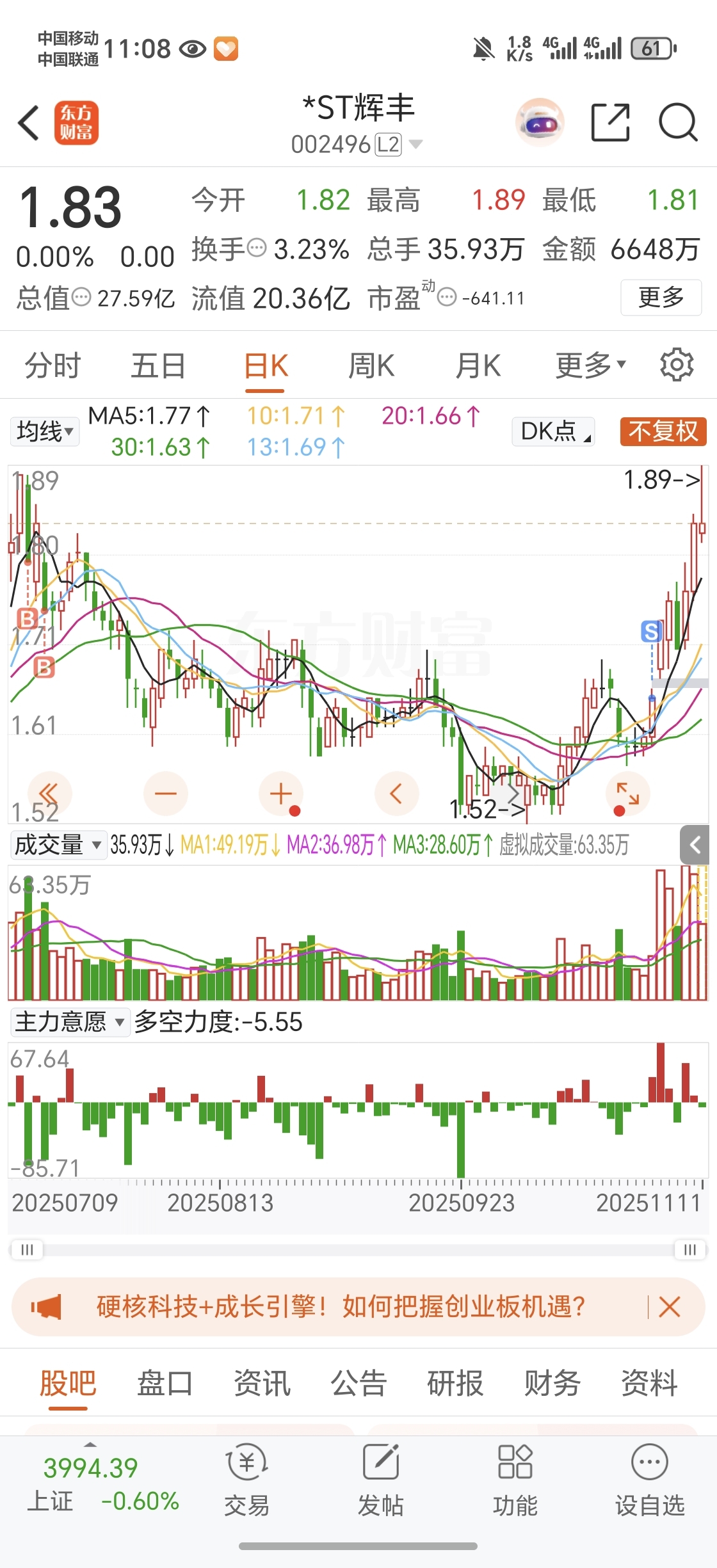$*ST辉丰(SZ002496)$ 连续涨了几天,今天开始是不是马上要连续下跌