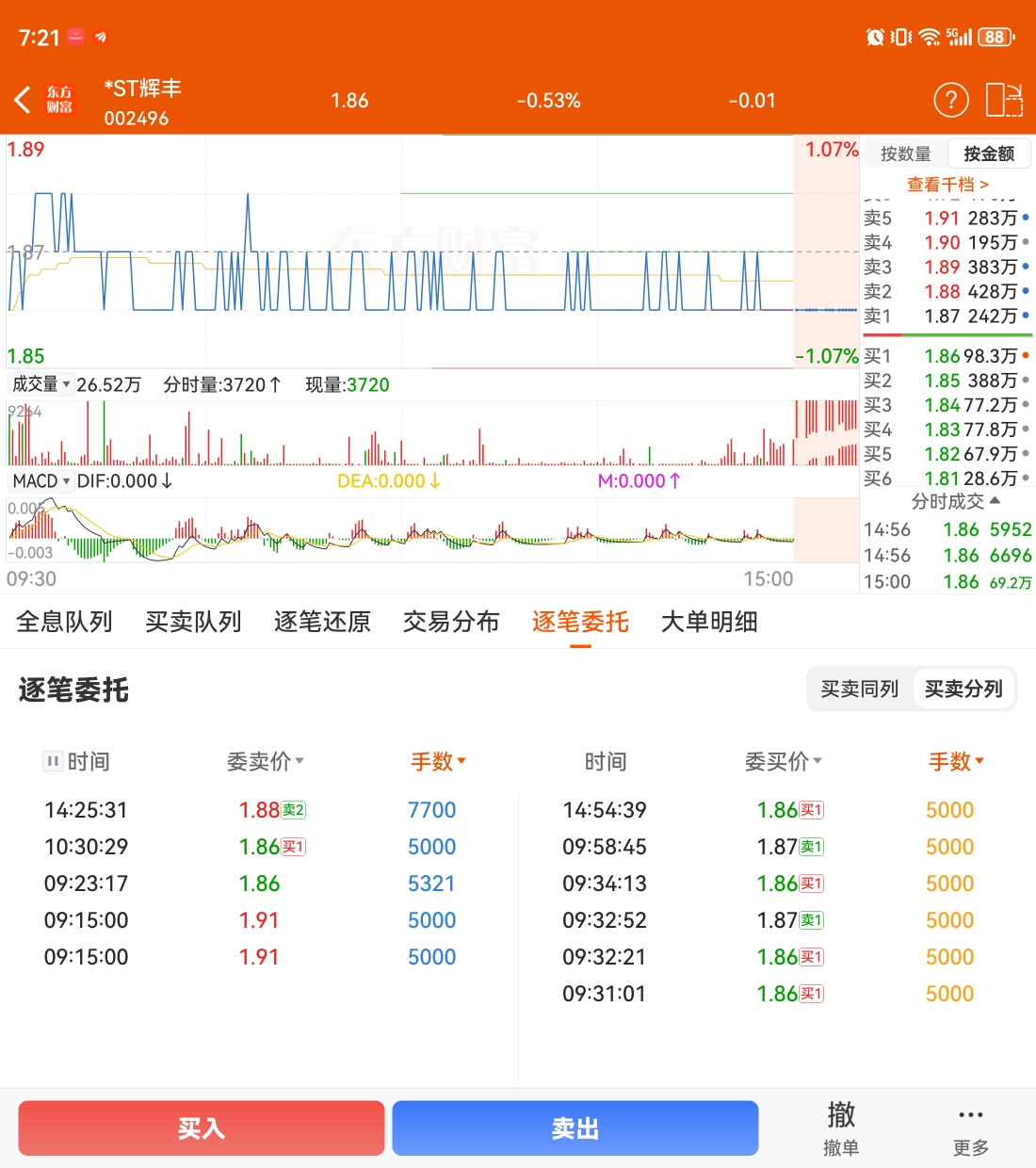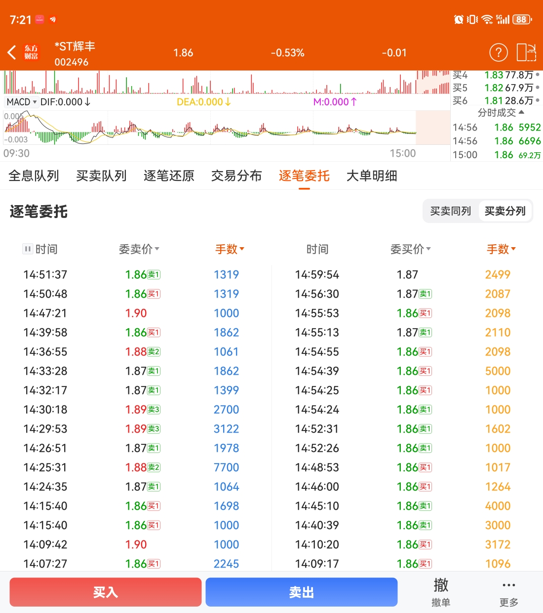 明天五日线价格应该是1.86元,明天微微放量就是两阳夹阴攻击向上,尾盘吸货明显
