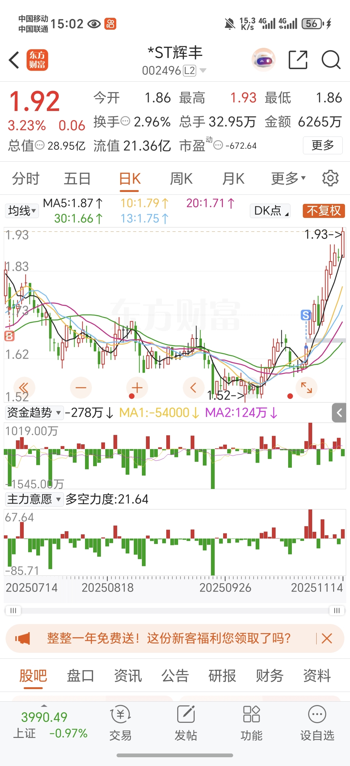 $*ST辉丰(SZ002496)$ 服气了,什么时候跌回1.57什么时候买入