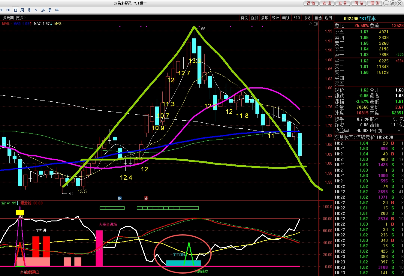 $*ST辉丰(SZ002496)$ 高位时发了一张图,说主力跑了,你们看笑话,说指标是不准的,回头验证下,当初对不对?这垃圾还会跌,因为主力还没回来抄底进场,完成标准A杀到1.5左右才止跌,到年报预报出来,不理想杀到1.16都极有可能。