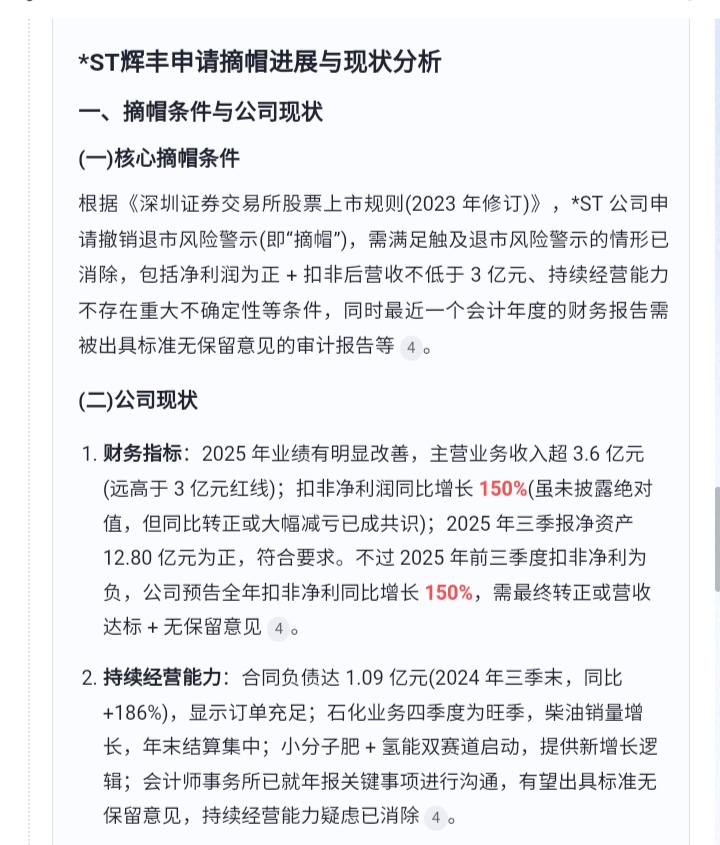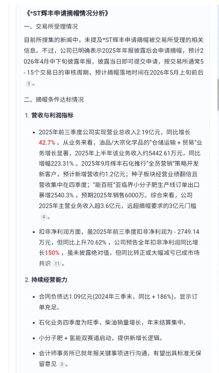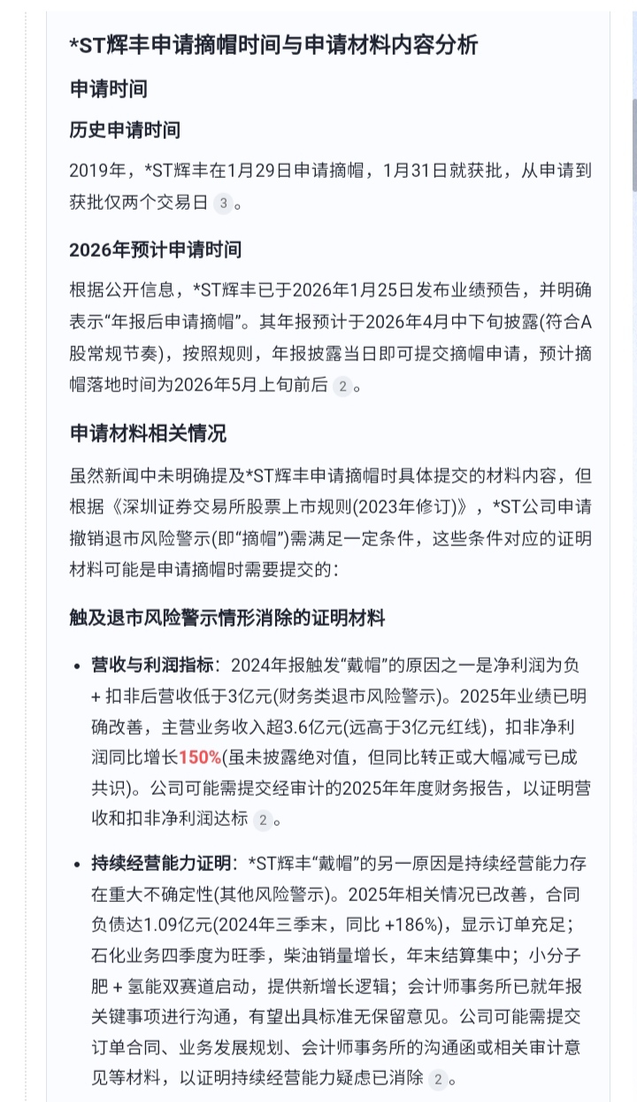 转发:*ST辉丰申请摘帽时间、内容、进展全方位分析