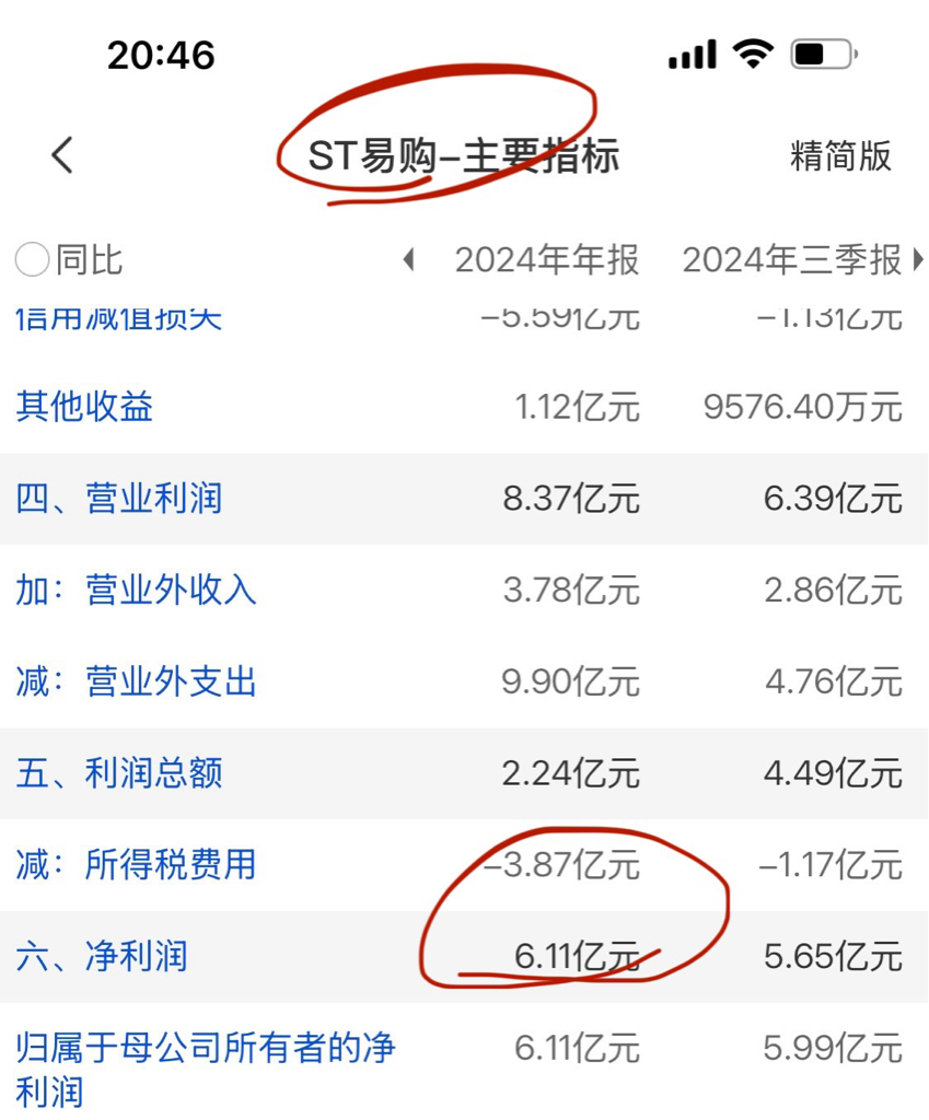 去年易购盈利6亿,扣非亏损都只是摘了星,因为持续经营能力不确定,辉丰戴帽的原因也