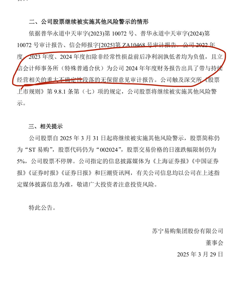 去年易购盈利6亿,扣非亏损都只是摘了星,因为持续经营能力不确定,辉丰戴帽的原因也有利润负数持续经营能力不确定,只能摘星不能摘帽