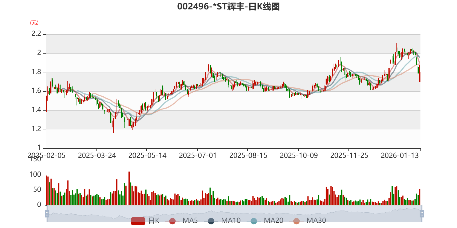 *ST辉丰:预计2025年亏损1.7亿元-2.2亿元