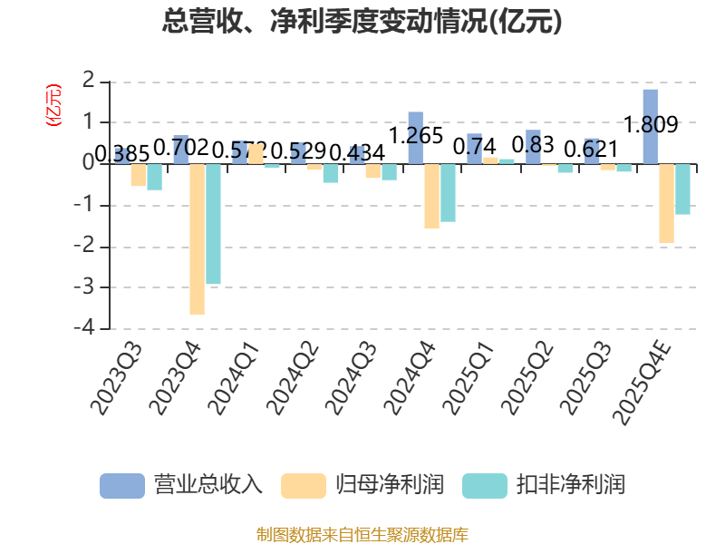 中证智能财讯 *ST辉丰(002496)1月30日晚间披露2025年度业绩预告,预计2025年实现营业收入3.8亿元至4.2亿元;归母净利润亏损1.7亿元至2.2亿元,上年同期亏损1.55亿元;扣非净利润亏损1.3亿元至1.7亿元,上年同期亏损2.34亿元;基本每股收益-0.11元/股至-0.15元/股。以最新收盘价计算,市净率(LF)约2.05倍,市销率(TTM)约6.78倍。