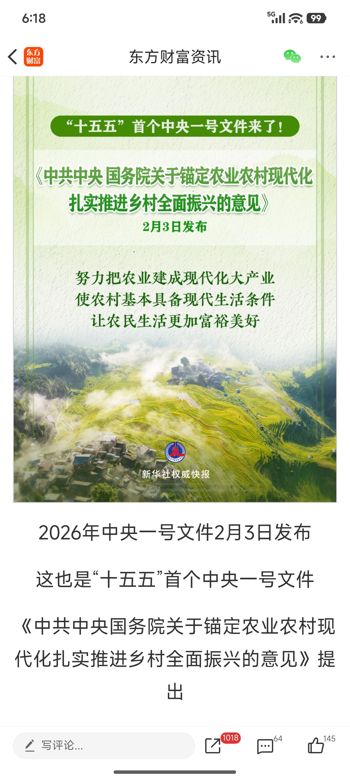 $*ST辉丰(SZ002496)$ 中央1号文件来了
