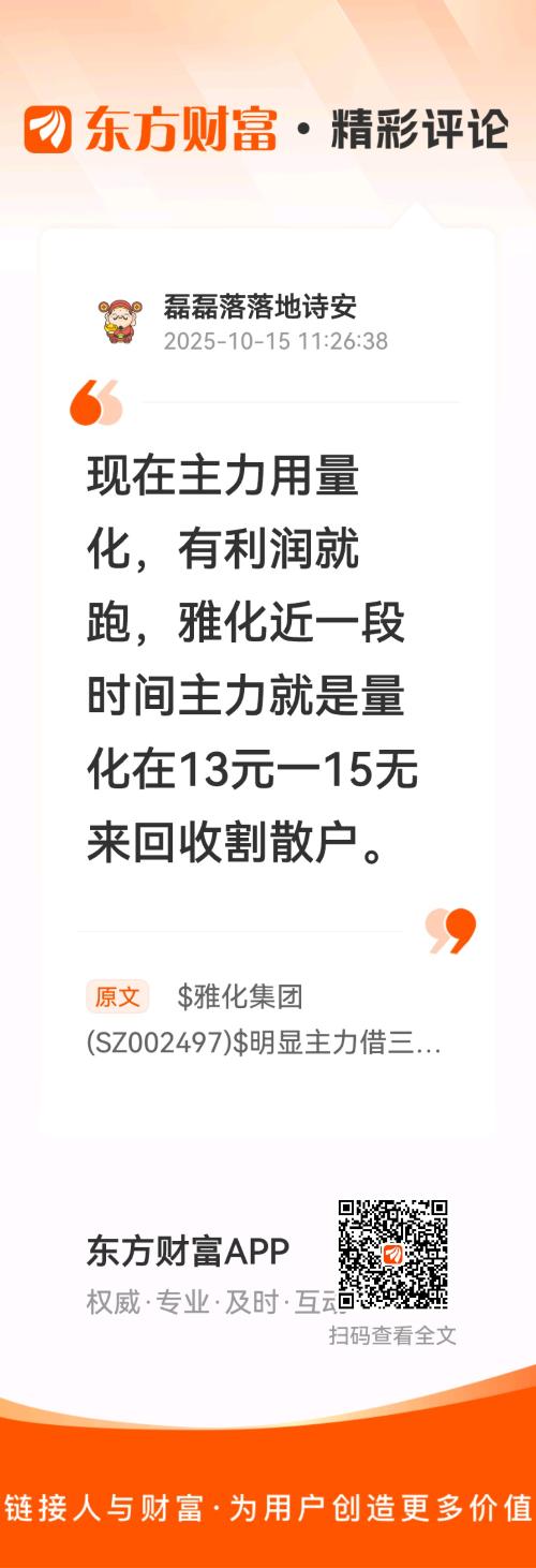 //@磊磊落落地诗安 :现在主力用量化,有利润就跑,雅化近一段时间主力就是量化在13元一15无来回收割散户。