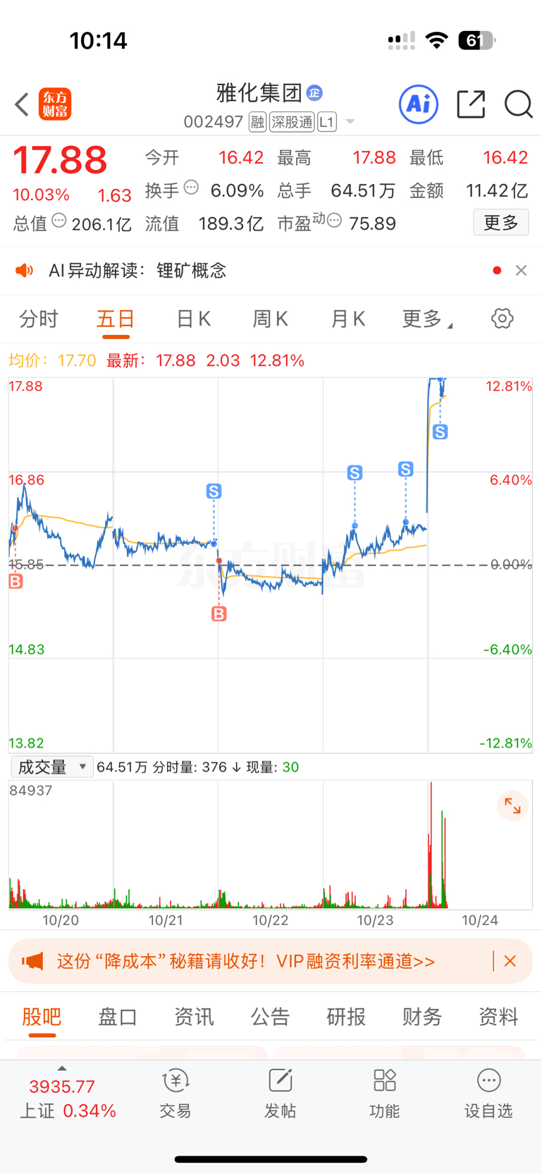 $雅化集团(SZ002497)$ 我是真怕亏钱,赚了点就跑了,不好意思啊哥们