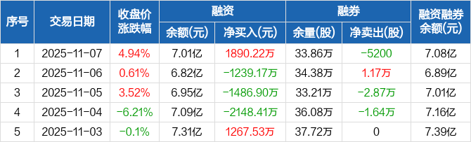 雅化集团:融资净买入1890.22万元,融资余额7.01亿元(11-07)