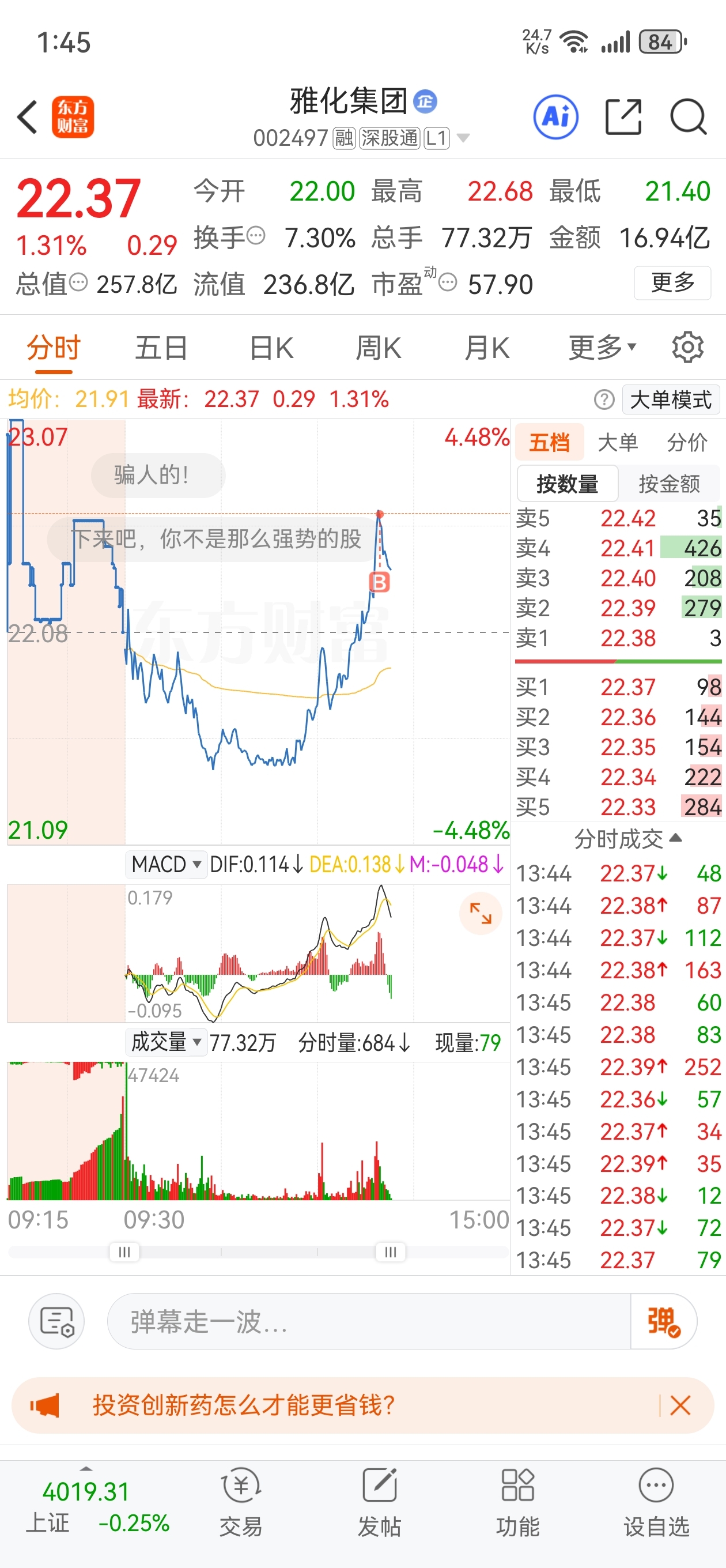 温馨提示: 1.根据《证券法》规定,禁止编造、传播虚假信息或者误导性信息,扰乱证券市场;2.用户在本社区发表的所有资料、言论等仅代表个人观点,与本网站立场无关,不对您构成任何投资建议。用户应基于自己的独立判断,自行决定证券投资并承担相应风险。《东方财富社区管理规定》