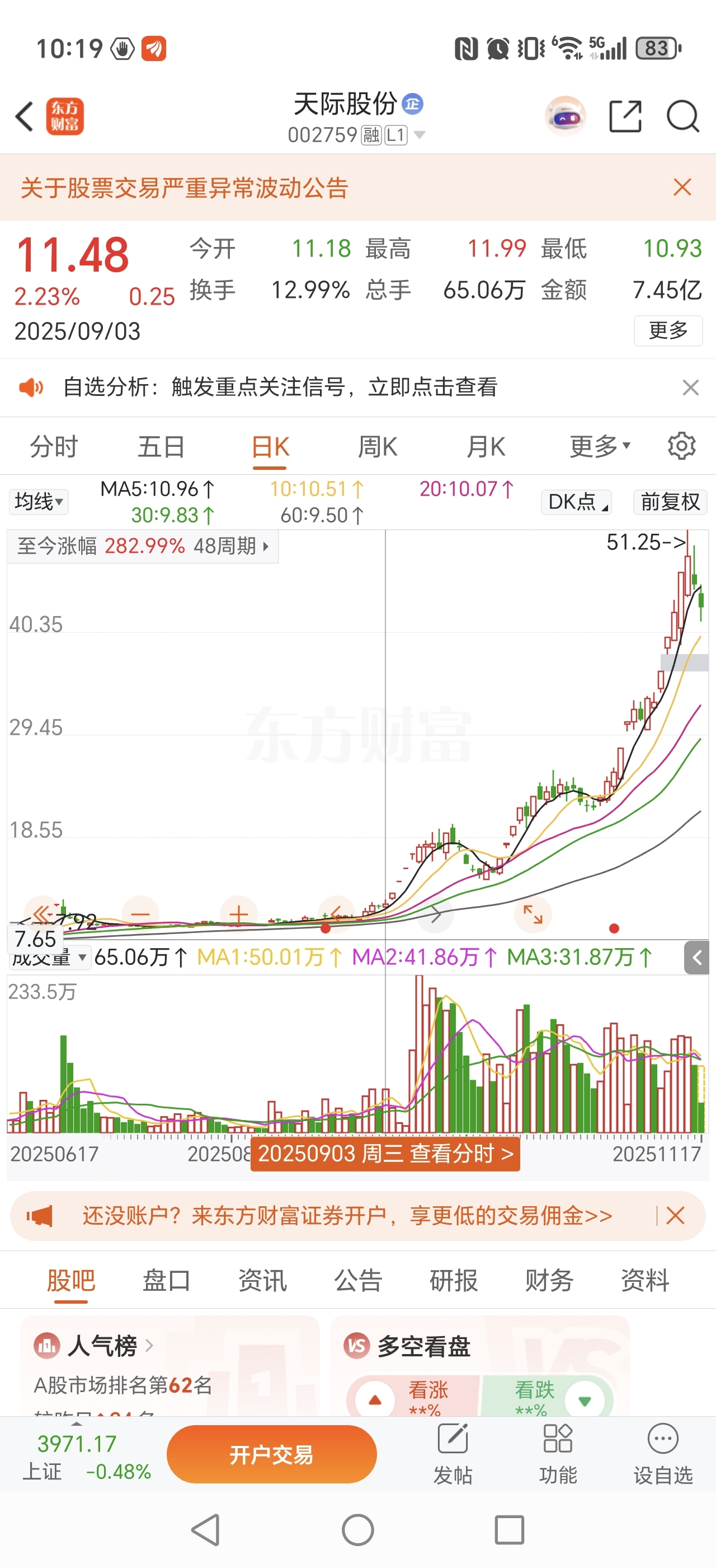 看来是要走天际股份的路,恭喜在车上吃肉的朋友