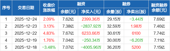 雅化集团:融资净买入2399.36万元,融资余额7.62亿元(12-24)